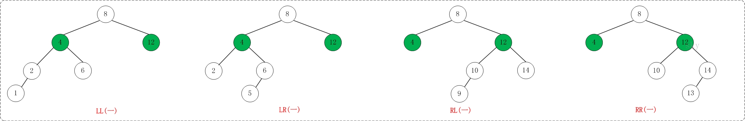 总的来说,AVL树失去平衡时的情况一定是LL、LR、RL、RR这4种之一。