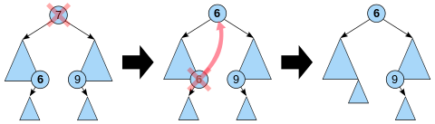- 若结点 z 只有左子树或只有右子树,则让 z 的子树成为 z 父结点的子树,替代 z 的位置;