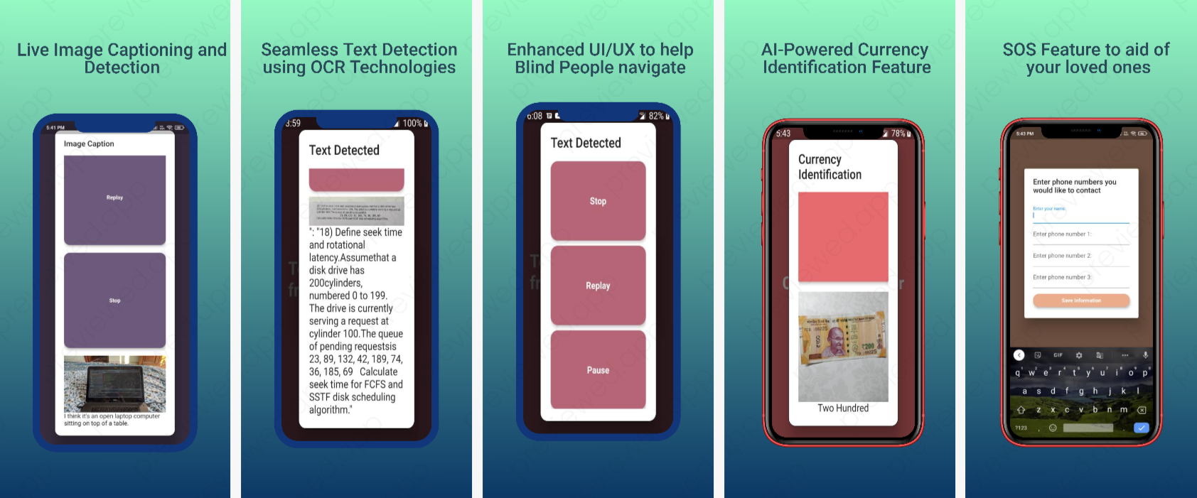 - Every feature, from image labeling to currency detection uses a text-to-speech feature to speak out to the user whatever is detected 🗣️